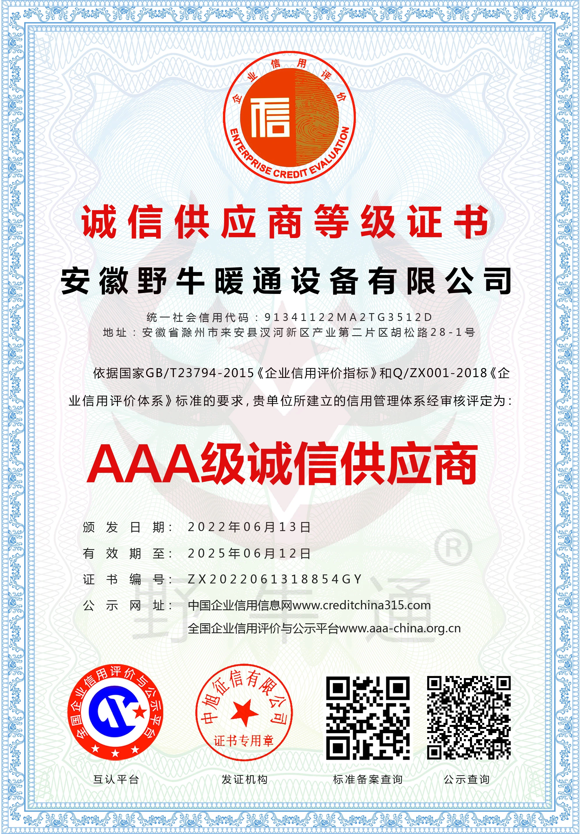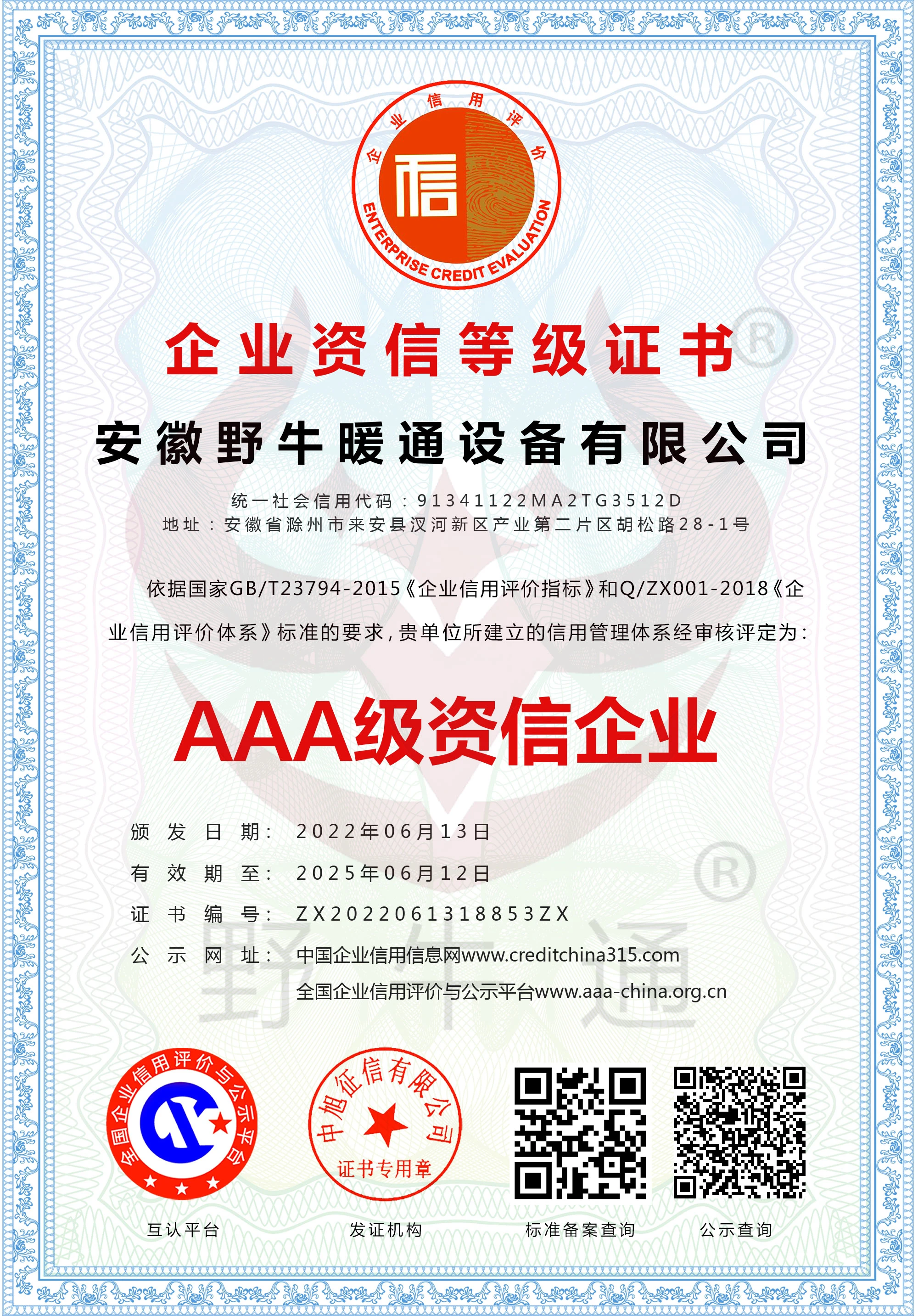 企业资信等级证书
